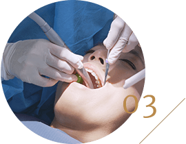 「静脈内鎮静法」を取り入れておりますので、不安がある方にもリラックスしている状態で手術を受けていただくことができます。歯科治療恐怖症やパニック障害の方や手術自体に不安を感じておられる方はぜひご相談ください。