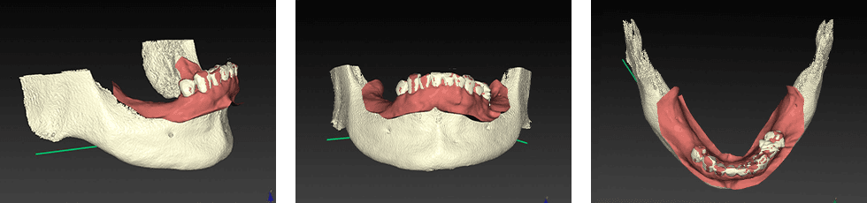 まずは、お口の型取りとCTをお撮りいたします。CTによりお口の顎の骨の状態と歯の状態をデジタルデータとして記録します。型取りをさせてもらったお口の型をスキャンさせてもらい、歯茎の状態と歯の状態をデジタルデータとして記録します。