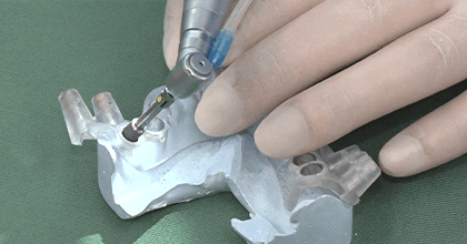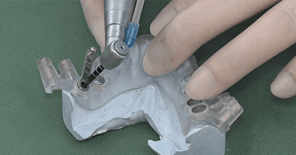 サージカルステントを使って正確な位置と角度で、骨を削っていく。