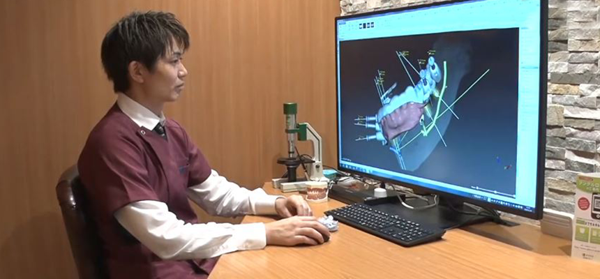 パソコン画面上で決定されたインプラントの位置をお口の中で再現して手術ができるように、サージカルステントといわれるものを画面上で設計し、メーカーにオーダーしてもらいます。