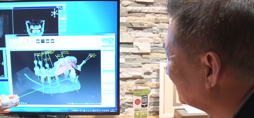 まずは、お口の型取りとCTをお撮りいたします。CTによりお口の顎の骨の状態と歯の状態をデジタルデータとして記録します。型取りをさせてもらったお口の型をスキャンさせてもらい、歯茎の状態と歯の状態をデジタルデータとして記録します。