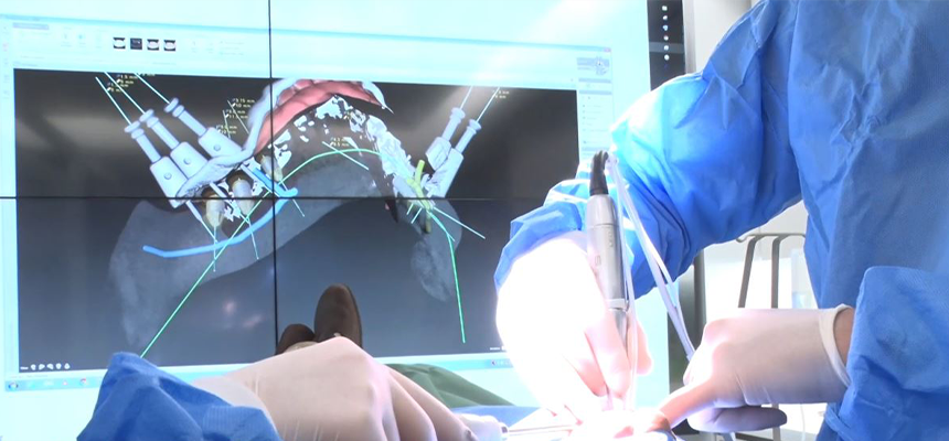 サージカルステントを使って正確な位置と角度で、骨を削っていく。
