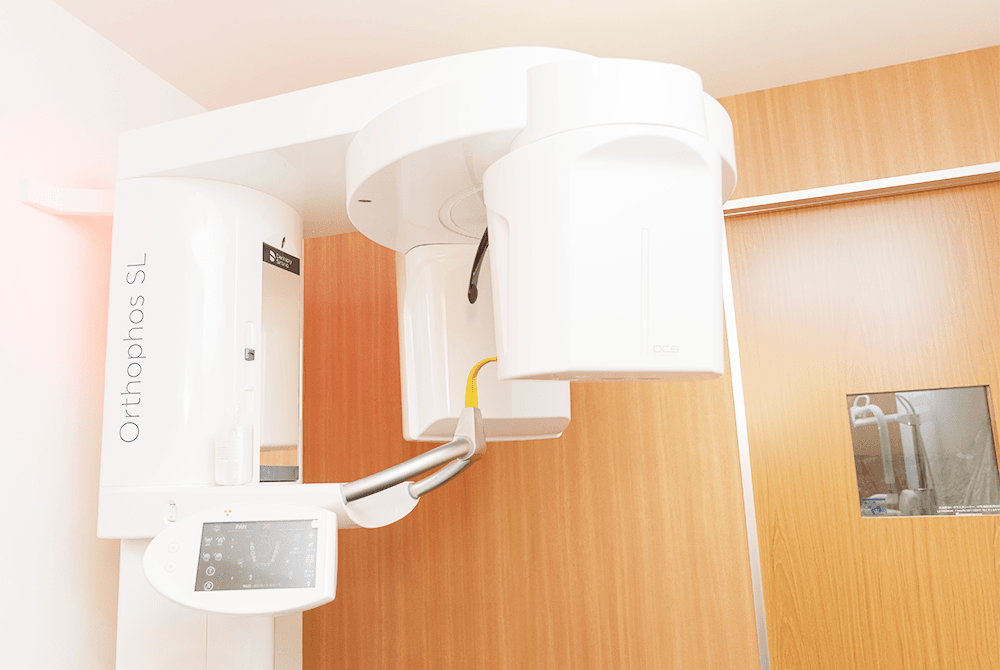 当院では、インプラント治療の安全性と治療のクオリティーを高めるために、最新の高度医療機器である3D-CTを導入しております。立体的(三次元)に撮影できる装置で、従来のレントゲンでは見えなかった「骨の厚さ」「神経・血管の位置」「骨内の空洞の位置」などを正確に確認することができます。導入している個人歯科医院は、日本ではまだまだ少ない状況です。また、当院が導入しているCTは、患者様の安全にこだわり、日本より厳しいヨーロッパ水準の低被爆のドイツ製です。通常の歯科用CTの8分の1~10分の1程度ですので、ご安心下さい。