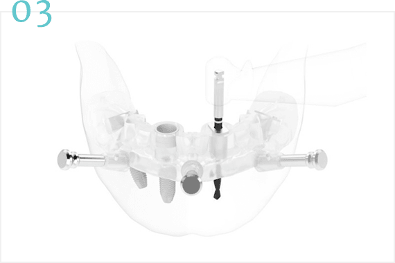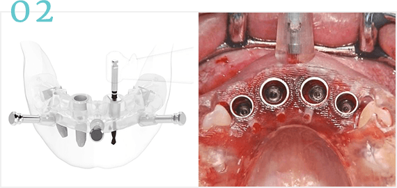 シミュレーションをもとに、治療のためのガイド(ノーベルガイド)を作成します。ガイドがあることで余計な切開をする必要がなく、患者様の負担の少ない安全な治療を行うことができます。