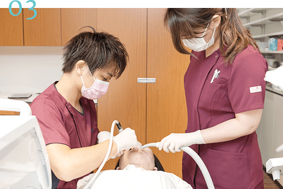 歯科医・歯科衛生士がきちんと健診・ケアを担当し、不具合の予防に努めさせていただきます。