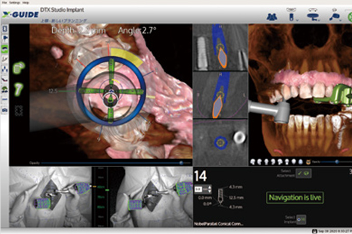 X-guide(Xガイド)による3Dダイナミックナビゲーションにより、従来の治療では必須だったサージカルテンプレートの作成が不要になりました。